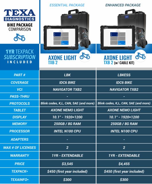 TEXA’s OEM relationships with manufactures has made the TEXA BIKE software the most tested and proven diagnostic tool in the industry. The software includes 20 years of experience and diagnostic capabilities.
