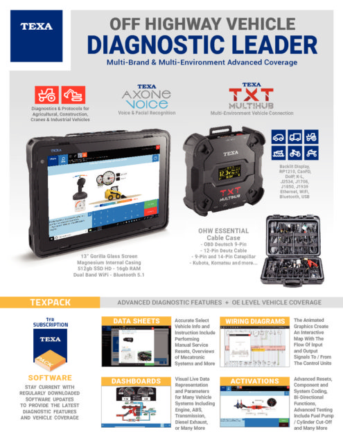 TEXA USA offers the best scan tool for heavy equipment technicians: the NAVIGATOR TXT MULTIHUB with IDC5 OHW.